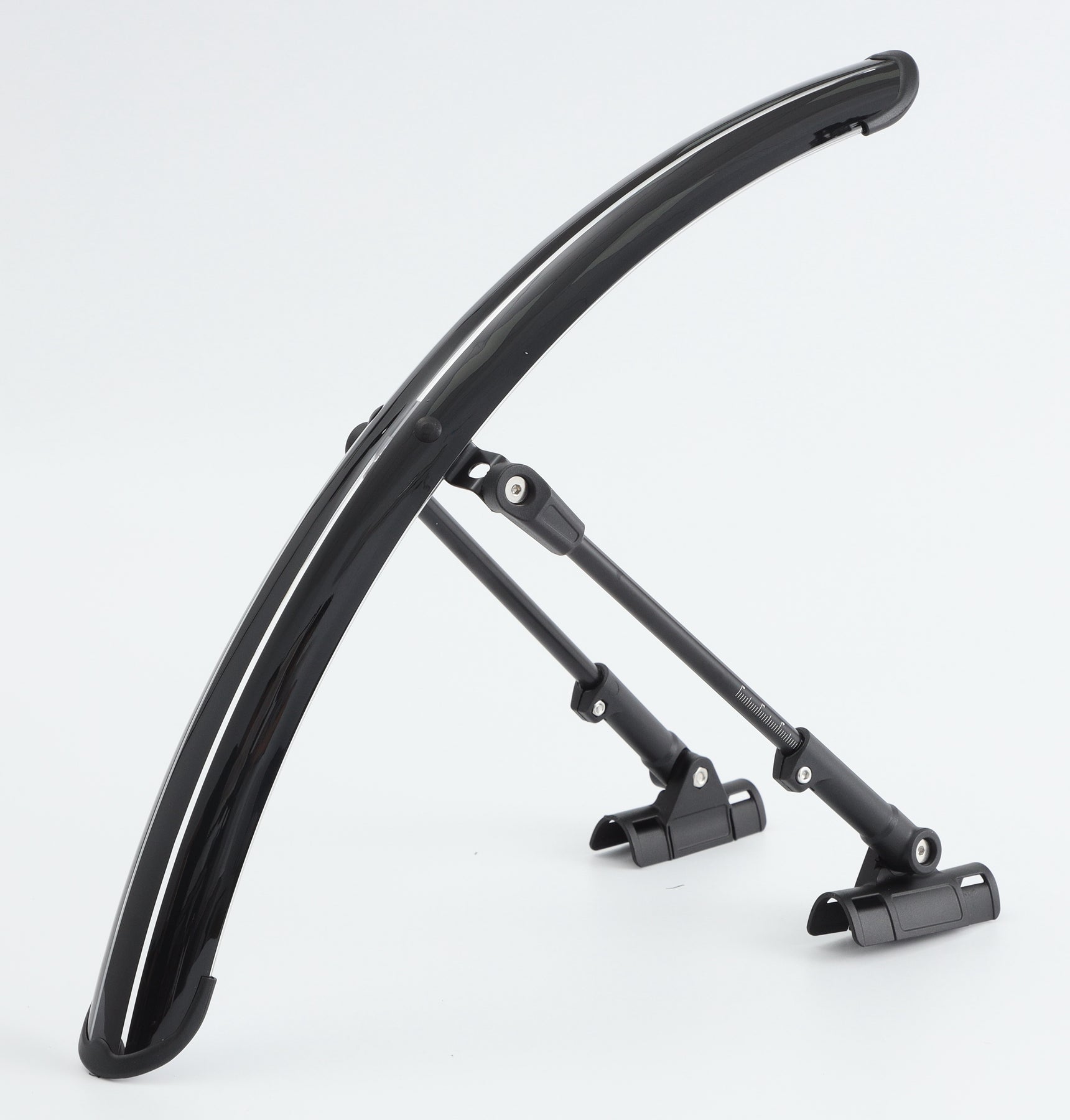 2-teilig: Vorderrad-Schutzblech (Gabelmontage) + Hinterrad-Schutzblech (Kettenstreben). Montage mit Spezial-Kabelbindern an den Streben; Anleitung im YouTube-Kanal.